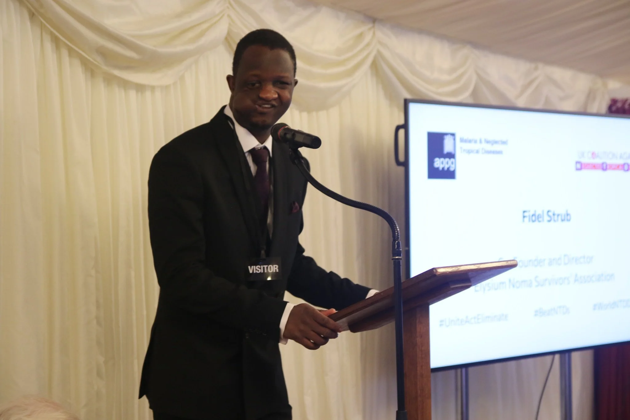 The newsletter of the UK Parliamentary Network (All-Party Parliamentary Group on Malaria and NTDs) acknowledges the work of Fidel Strub as a Noma survivor and co-founder of the Elysium Noma Survivors Association. He spoke at the World NTD Day event in the House of Lords about his experiences with Noma and the importance of awareness around oral health.